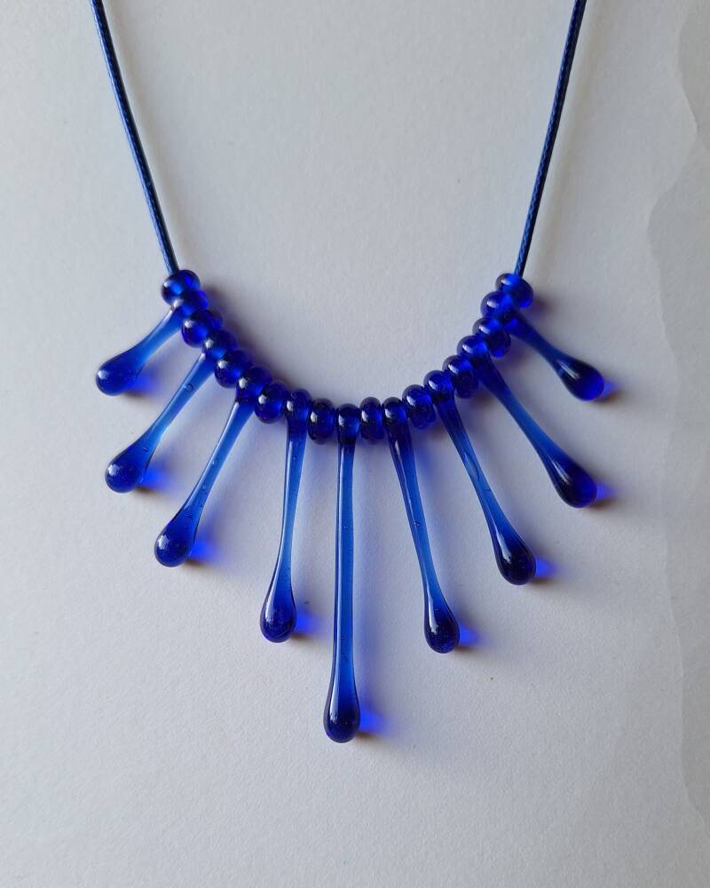 Ketting van 45 cm. met pegels van gerecycled glas (was een wijnfles)